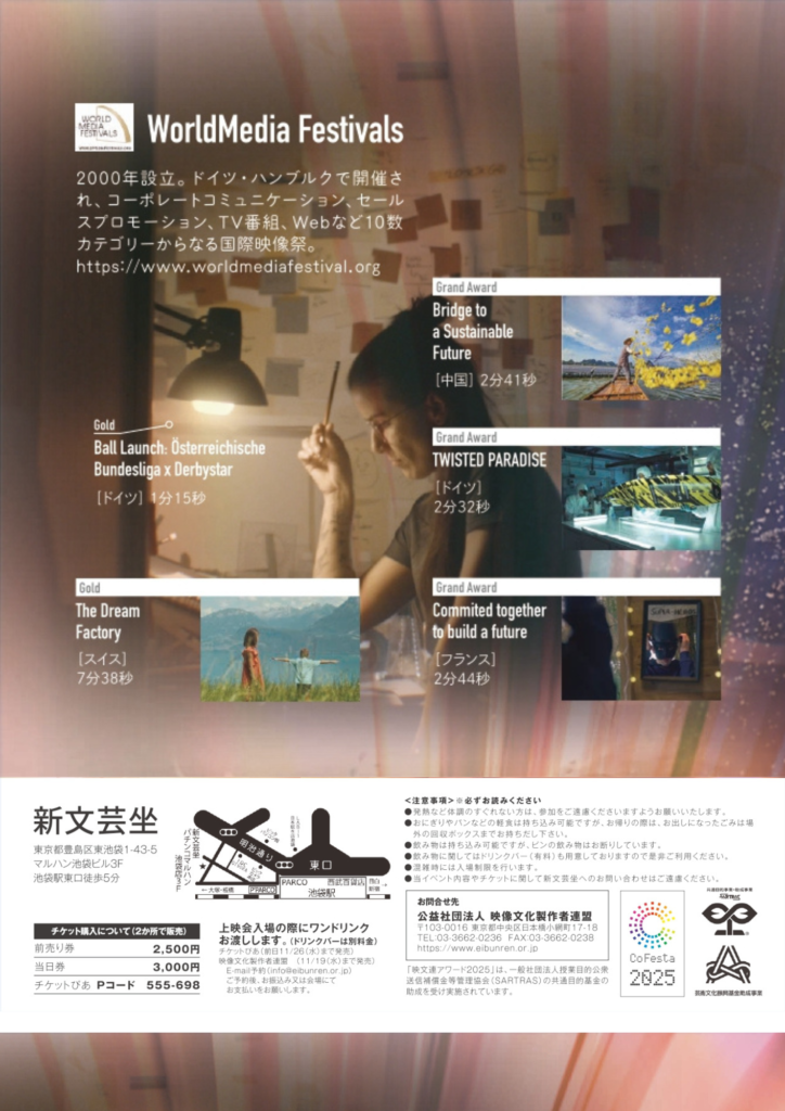 The programme is aimed at professionals working in the film and video industry, as well as students and emerging creators. It offers a rare opportunity in Japan to experience internationally awarded corporate and television productions and to gain insight into global trends, techniques and storytelling approaches in professional media production.